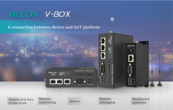 Wecon lloT Gateway (V-BOX) is the basic hardware of Wecon IloT platform(V-NET). It is an indispensable equipment about information exchange and protocol conversion for the communication between the loT cloud platform and the system. V-BOX could define the LUA script to help most machines controlled by PLC to connect with any other cloud platform like HUAWEI, Google loT, Alibaba Cloud etc. Our website also has HTTPS protocol to ensure the access security of users. Wecon V-BOX has six series, namely E series, H series, RE series and RH series. Each series launches models with different specifications according to different market demands. Customers can choose the corresponding V-BOX products according to their own needs.